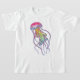 Uma ilustração colorida de um vetor de água-viva nadando na água do oceano escuro e profunda.