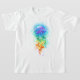 Água-viva grande, iridescente, desenhada artisticamente, brilhante, com longos tentáculos em branco, pintada sobre fundo de aquarela multicolorido. Água-viva arco-íris.