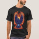 Uma águia negra poderosa voa através de um inferno feroz, suas asas estendidas e chamas. Os olhos piercing da águia e os talões afiados seguram um crânio humano por baixo dela, simbolizando seu domínio e controle sobre a mortalidade. O fundo feroz cria uma atmosfera dramática e intensa, destacando a força e a resiliência da águia.