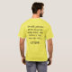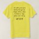 Esta camiseta de humor tem texto invertido atrás dizendo: "AJUDA! Se você pode ler isso, significa que eu caí do meu cavalo e não consigo levantar."