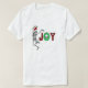 Um esqueleto que donning um chapéu do papai noel dança feliz. A sua direita: A ALEGRIA é escrita a pia batismal do crânio em máscaras festivas do feriado do vermelho e do verde. Divertimento, design subtil para aqueles que como todo o esqueleto-estilo do feriado das coisas. A pia batismal do crânio é chamada Skullphabet por http://www.skulladay.com.