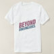 O design de t-shirt apresenta a frase "Beyond Boundaries" em negrito, cores contrastantes de cor rosa brilhante e azul escuro. O texto aparece de forma destacada na camisa, com foco nas palavras. As cores utilizadas são vibrantes e atraentes para os olhos, fazer o design.