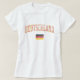 O tipo de " Alemanha" e a bandeira nacional em uma máquina lavaram o estilo. A palavra ALEMANHA é ajustada em um carácter tipo escolar do estilo em um arco sobre uma imagem da bandeira alemão. A bandeira de Alemanha é uma tricolour consistindo em três bandas horizontais iguais que indicam as cores nacionais de Alemanha: preto, vermelho, e ouro. A bandeira foi adotada primeiramente como a bandeira nacional de Alemanha moderna em 1919, durante a república de Weimar. Aplique este design a toda a camisa. Recorde que o design não pode trabalhar em todos os estilos e cores da camisa. A posição do design pode deslocar segundo o estilo da camisa escolhido. Clique "personalizam-no" botão para ajustar a posição do design ao seu gosto.