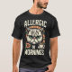 Uma ilustração humorística de um gato rabugento com olhos verdes, cercado por flores e grãos de café. O texto "ALERGIC TO MORNINGS" é escrito por cima e por baixo do gato, com uma linha decorativa que separa as palavras. A design é simples e atraente, com uma mensagem clara que apelará aos amantes de gatos e a qualquer pessoa que luta para sair da cama de manhã.