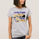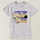 "Algo Mal Vindo Assim" declara o texto estilizado desta camiseta Halloween. O texto está em azul escuro e laranja, com morcegos pretos voando sobre eles, uma aranha preta rastejando no fundo, e uma vassoura no meio. Perfeito para a época das bruxas!