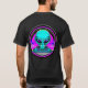 Arte psicodélica neon representando uma alienígena e um disco voador. Conteúdo genérico.