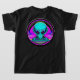 Arte psicodélica neon representando uma alienígena e um disco voador. Conteúdo genérico.