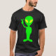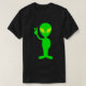 Camiseta alienígena verde limão dando sinal de paz