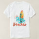 Aloha ensina camiseta branca masculina com conselho surf e design de sol. Este design apresenta a Aloha na fonte design de caligrafia com um conselho de surfe e raios solares.