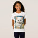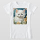 T-Shirt com um gatinho no estilo Art Nouveau de Alphonse Mucha! Um gatinho branco e fofo com poses azuis com flores amarelas. Um presente bonito para amantes de gatos e colecionadores de Art Nouveau!