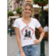 Camiseta feminina, gola em V