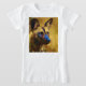Uma pintura digital que funde o hiperrealismo com uma abstração ousada e contemporânea. Este retrato cativante de um Cachorro Selvagem Africano apresenta um confronto harmonioso de matizes vibrantes azuis profundos, ouros e verdes elétricos que inspiram vida em cada fio de pele e sombra. As pinceladas texturizadas, quase cúbicas, adicionam profundidade e movimento, transformando um simples perfil canino em uma afirmação de beleza bruta e intensidade emocional.