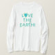O coração e o design de texto azuis amam os t-shirt ambientais da terra, canecas, cartões, etiquetas, sacolas, travesseiros, hoodies, botões, chaveiro, e outros artigos mostrar seu apoio para um ambiente limpo e seguro.