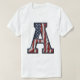 Um design elegante apresentando a letra "A" preenchida com um motivo de bandeira americana. A combinação de tipografia clássica com tons patrióticos de vermelho, branco e azul cria um design único e moderno. Perfeito para quem deseja expressar orgulho nacional ou personalizar produtos com sua inicial. Funciona perfeitamente em camisetas, almofadas, canecas e outros produtos de impressão sob demanda – especialmente para ocasiões como o Dia 4 de Julho ou o Dia da Memória.