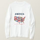 Declaração pró-imigrante, tema histórico da América, mensagem de diversidade patriótica, design anti-xenofobia, contribuições de imigrantes, orgulho de bandeira americana, inclusão e unidade, derretimento da sociedade pote, consciência multicultural, respeito à história