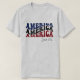 Perfeito para o dia 4 de julho, mas apropriado durante todo o ano! Esta camisa repete o texto estilizado "AMÉRICA" em azul, preto e vermelho. Na parte inferior está a escrita negra "Desde 1776".
