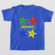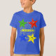 Caracteres vermelhos, azuis, verdes e amarelos em um turbilhão de estrelas amarelas para uma camisa única de amigos. O design pode ser usado em qualquer camisa zazzle. Um belo presente de moda trará um sorriso para o garoto em todos nós. Seria especial para vários amigos terem a mesma camisa. Design original do Anura Design Studio.