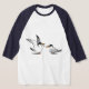 Camiseta Básica, Mangas Raglan 3/4, Branco/Preto, Adulto M