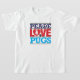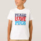 Declare sua raça favorita do cão com este artigo que caracteriza as palavras "paz, amor, e Pugs". A letra "c" na paz da palavra for substituída com um sinal de paz, quando o coração que substitui a letra "O" no amor, contem uma silhueta de um pug. Disponível com produtos de harmonização.