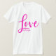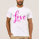 Amor Sempre em texto cor-de-rosa brilhante, Script Elegante de Escrita Manual com um coração bonito, Camisas de Amor, Camisa Rosa e Unísex Branca