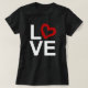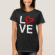 Camiseta AMOR, preto e branco com coração esboçado vermelho