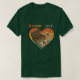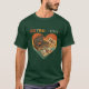 A camiseta "Retro Love" apresenta um design vibrante e nostálgico com fita cassete em forma de coração, cercada por padrões geométricos ousados, inspirados nos anos 80 e cores neonatais. A frase "Amor Retroativo" é escrita em uma fonte retrô, evocando uma vibração divertida e vintage.