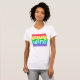 Este trabalho de arte apresenta um arco-íris colorido com as palavras Amor vence.
