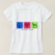 Amor Vizsla da paz. Três silhuetas do amante do cão em seguido, uma paz assinam dentro brandamente o azul, um rosa do coração do amor, e um esboço húngaro de Vizsla no verde com as palavras o mundo perfeito.
