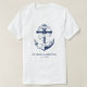 Camisa de mel de casamento azul e branco náutico. Ótimo para um casamento na Marinha (militar) ou casa de lago. O design apresenta uma âncora envolta em uma faixa com o texto "Enraizado no amor". Personalize-o com os detalhes do seu casamento.