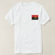 A frente desta camiseta tem uma pequena bandeira angolana com seu familiar motivo amarelo sobre vermelho e preto, enquanto a parte de trás exibe um mapa de alivio de Angola. Disponível em t-shirts, camisas de suor, polos, capas compridas e muito mais.