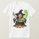Stand out this spooky season with this Halloween design featuring a cartoon witch brewing a glowing green potion in a bubbling cauldron over blazing fire, surrounded by magical smoke and sparks.
