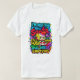 Style & Background: The graphic is done in a pop art/graffiti style with thick outlines and neon colors. It is set against a background of colorful, chaotic paint splatters and drips.
