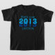 Aniversário de 2013, feliz camiseta preta de 10 anos para o presente de 10 anos, uma sombra produz efeitos azuis e uma tipografia teal. com o nome personalizado e o número 10º atrás.