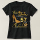 Esta rainha está fazendo 57 anos e uma camisa de aniversário fabulosa! Esta camisa apresenta uma bela ilustração de uma mulher de 57 anos em um vibrante vestido preto. Perfeita para celebrar o seu grande dia, esta camisa certamente fará você parecer fabulosa. Feita de algodão 100% macio, é confortável de usar e perfeita para qualquer ocasião. Compre a sua hoje!