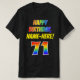A frente desta incrível, colorida e corajosa camisa de aniversário com tema de design apresenta um grande número "71" e a mensagem "FELIZ ANIVERSÁRIO", ambas coloridas com um padrão inspirado no gradiente do arco-íris, junto com um nome ousado e amarelo personalizável. Camisas animadas de aniversário como esta podem ser vestidas pelos participantes numa celebração ou festa em honra dos setenta e um aniversário de alguém. [~Z0000473]