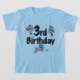 Três pequenos macacos-meias vestindo bonés azuis de beisebol estão lançando, deslizando e subindo no taco em nosso design Sock Monkey Baseball aniversário de 3 anos com macacos-meias e texto legal que diz "3º aniversário".