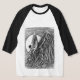Camiseta Básica, Mangas Raglan 3/4, Branco/Preto, Adulto G
