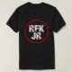 Democratas unem-se contra o RFK Jr. Este candidato político para as eleições presidenciais de 2024 não demonstra valores partidários democráticos. Um ataque vermelho e um círculo em torno do nome de Robert F. Kennedy Jr em uma camiseta política.