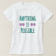 A charming and uplifting design featuring the inspirational phrase "Anything is Possible" in soft light teal, accented with two sets of delicate pink hearts to spread positivity and love.