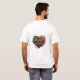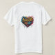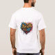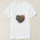 A design da camiseta apresenta a frase "Harness the Heart." em uma fonte vibrante, no estilo do grafite. As palavras estão cercadas por tons de cor e linhas dinâmicas que evocam um senso de paixão e de impulso. O design geral é ousado e enérgico, captando a essência da mensagem