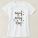 Feather design "aproveite o seu dia", frase caligráfica decorada em t-shirt feminina.