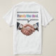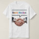 Imagem mostrando duas mãos reais tremendo umas às outras. As mãos estão vestindo relógios. Há uma bolha de discurso acima das mãos com o texto "Aqui está o Acordo."