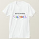 Conhece alguém que precisa de um "Aqui vem o problema"? Com esse slogan colorido, você pode dar a todos um aviso justo que o problema acabou de aparecer! Este design de atenção tem 'Problemas' em letras coloridas, mas definitivamente não é só para crianças! NOTA: todos os designs "problemáticos" disponíveis em uma série de camisas, camisolas, camisas de 3/4 mangas, camisas de casaco, camisetas para crianças, vistas de bebês / trepadores de bebês, camisas soltas, e muito mais. Personalize o estilo, o tamanho e a cor do seu produto aqui no Zazzle.