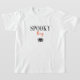 Mostra "Spooky Boy" em preto e laranja no Halloween e uma aranha preta fofa. Legal, na moda, moderno. Para um menino / criança para o Halloween, outubro ou outono. Obtenha o pai / pai, mãe e design de menina correspondente para toda a família.