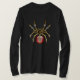 Aranha mecânica, com pá-pá de ouro, engrenagens de latão e uma lâmpada de vidro vermelha sobre fundo preto. Estilo Steampunk.