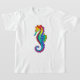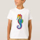 Articulação artificial, brilhante, arco-íris, cavalo de mar poligonal sobre fundo branco. Tatuagem brilhante.