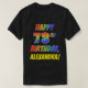 A frente desta camisa de aniversário atraente, vibrante e divertida apresenta a mensagem "FELIZ 73RD BIRTHDAY" com letras e dígitos com um arco-íris multicolorido, como um padrão de gradiente, e um nome personalizável, amarelo. Uma camisa divertida e feliz como esta pode ser vestida pelos convidados numa festa de aniversário que está a ser realizada em comemoração dos setenta e três anos de alguém. [~Z0000392]