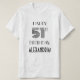 Esta design de camisa de festa de aniversário 510 mostra a mensagem "HAPPY 51rua BIRTHDAY", juntamente com um nome personalizado. O texto e os dígitos têm uma aparência inspirada em deco de arte, que lembra a década de 1930. Camisas como esta podem ser vestidas pelos convidados numa festa de aniversário que se realiza em comemoração dos cinquenta anos de alguém. [~Z0000451]
