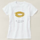 Codificação personalizada do vidro chic / t-shirt artística do salão de beleza com uma grande brilha dourada como lábios e texto personalizado de ambos os lados. Insira seu nome e título no lado frontal e seu nome comercial / seu texto no verso.