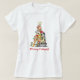 Camisa personalizada bonita com uma ilustração adorável de nove gatos formando uma árvore de Natal com luzes, uma estrela no topo e as palavras, "Meowy Catmas!"